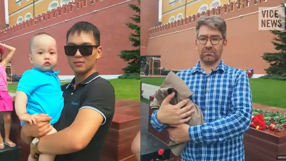 After successfully recreating numerous photographs from Dambaev's profile, Ostrovsky decided to see if he could actually reach the man he had been imitating. "We were able to pinpoint the area Dambaev lives in from some of the photographs he posted, then it was just a matter of asking the neighbors," Ostrovsky stated as he walked alongside the worn-down housing structures that line an unpaved road. Moments later, Ostrovsky is inside one of the buildings at Dambaev's door, standing face to face with Bato's obviously flustered wife. Her husband is not home at the moment, but his exact address is confirmed and the vulnerability of his family is exposed.
