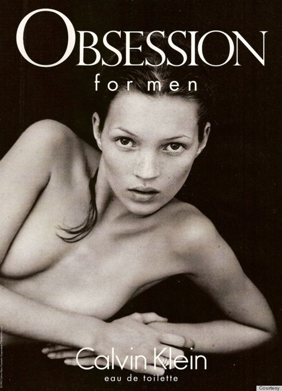 These advertisements, from Calvin Klein and Abercrombie & Fitch respectively, depict idealized versions of the subjects. They are all thin, without marks or blemishes on their skin and the high angles and lighting create shadows that make their muscle and bone structures as prominent as possible. All three models are also blatantly objectified. The Calvin Klein ad is “for men,” complete with a topless woman taking up the entire space. The man in the Abercrombie & Fitch ad has his hand on the young woman, whose face isn’t even being shown, and his body is also overly sexualized by the open shirt. The ads are used to sell a product, but they also sell a certain body image and messages of sexual objectification to the consumer.