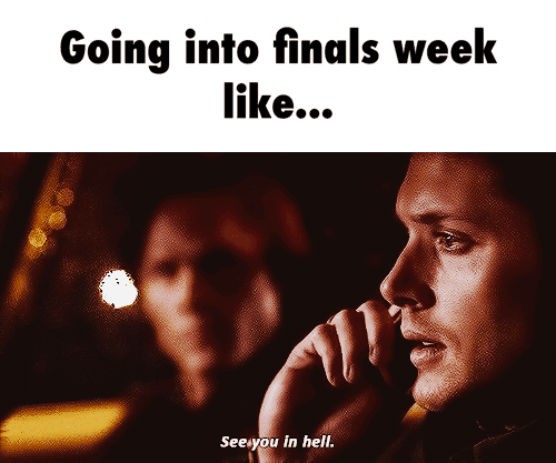 Finals week is literal Hell. And Dean should know! He’s seen Hell! (Watch Supernatural if you don’t get it. Just maybe wait to watch until after finals.)