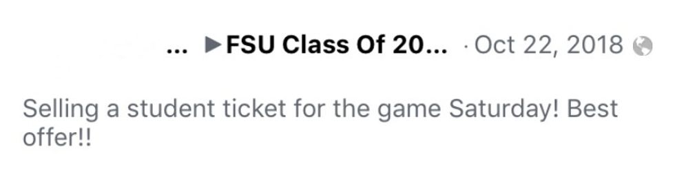 1. Getting ripped off and having to buy a student ticket off of some random person on an FSU Facebook page.