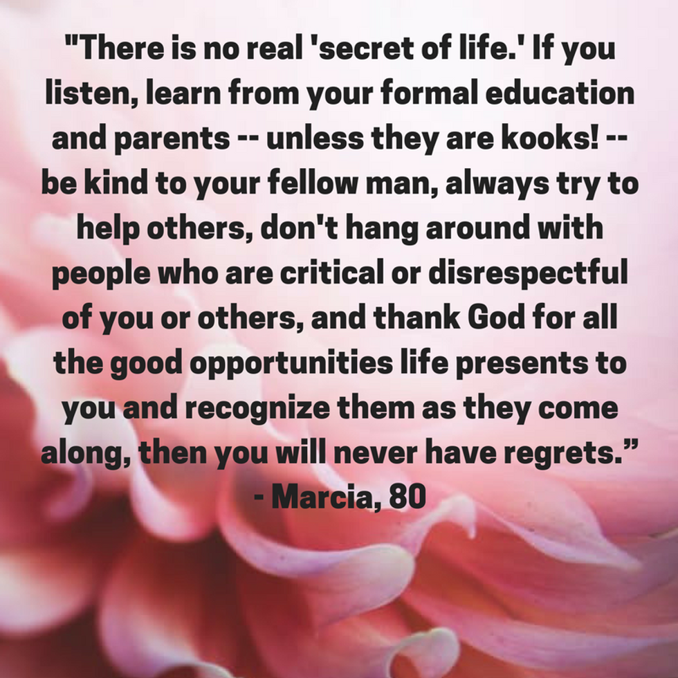 I believe that if we stop and pay attention to what our elders have to say, we may learn something truly valuable -- something that we may want to share with future generations. Last week, I interviewed a group of senior citizens in my community. I asked them to share some of their best advice for the younger generations -- specifically millennials. And their outlook may actually surprise you.