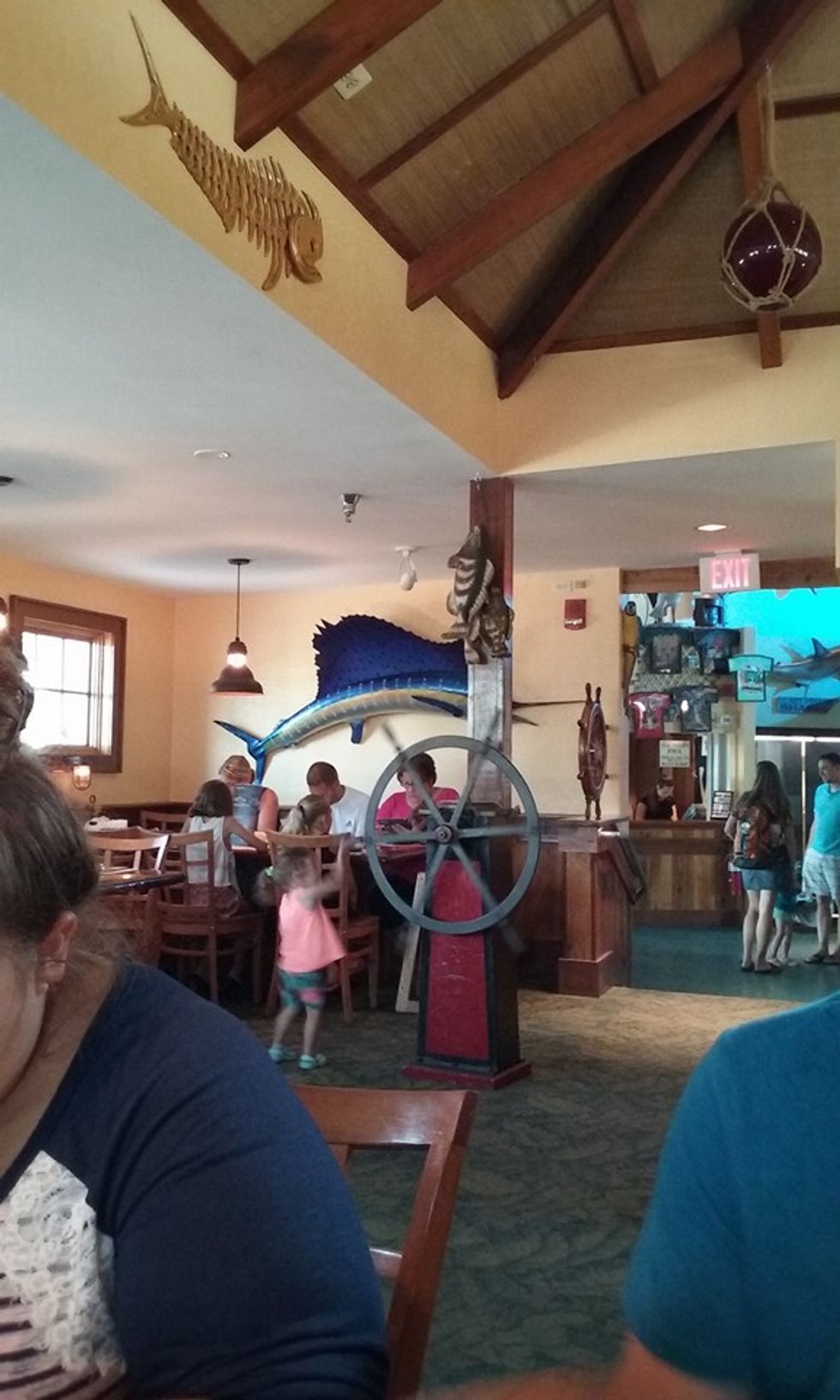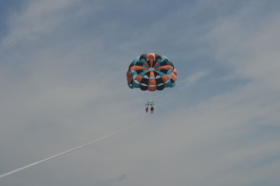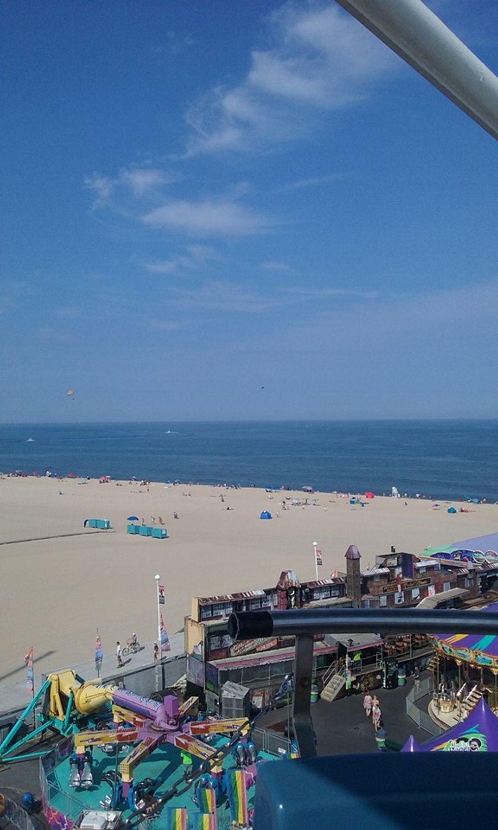 And just down the road (about a five minute drive) is the boardwalk with a few rides, a fishing pier, and carnival games. The Ferris wheel is a nice place to go and look upon the ocean. Not into carnivals? That's alright! Along the road there are multiple other things to do such as different mini golf set ups, a small water park, laser tag, go karts, and parasailing. My friend and I went for a morning walk and found a place called OC Parasail on 54th street; it's behind a few gift shops beside a restaurant. Anyways, we found out about this deal where if you reserve a time slot for 11 a.m. or sooner you only have to pay $90 for the both of us, which is less than the price if you only want to go up 400 feet ($60), and we sailed 800 feet in the air. You also have the option of going up 600 feet for $70 and you can buy a photo disk with up to 30 photos for $30. I recommend doing the early time reservation and go 800 feet (but it's per person) and everyone split the cost of the disk so they can share the photos. Three people can go up in the air at once.