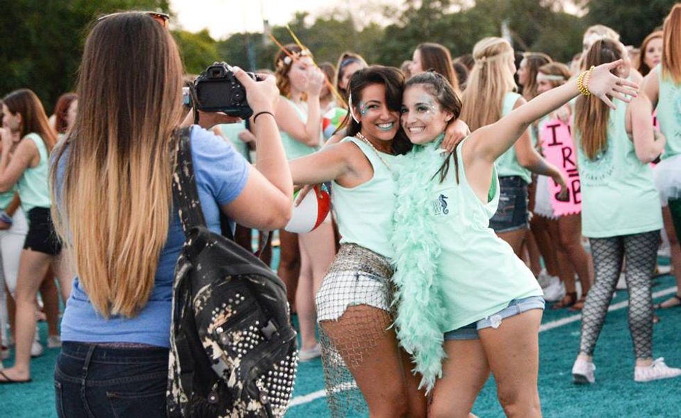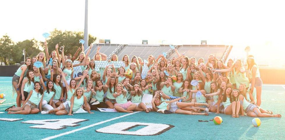 Let me paint a picture for you: glitter, face paint, rhinestones, decked-out costumes, and a whole lot of chanting. This is a sorority girl's Bid Day. Don't know what Bid Day is? Well it is ultimately a sorority girl's Christmas- but instead of presents, we get a beautiful new pledge class. It takes place after the longest weekend known to Greek life: recruitment weekend. There is nothing better than getting new sisters and watching your sorority grow. To welcome our new girls, we may or may not take things slightly above and beyond. Lets start with the themes... the most exciting part- other than the fact that new sisters will be running out and into our arms- is the theme of a sorority's bid day. There are tons of themes that have been executed with a perfectionist approach. This year it was borderline impossible to keep ours a secret because of how excited we were.