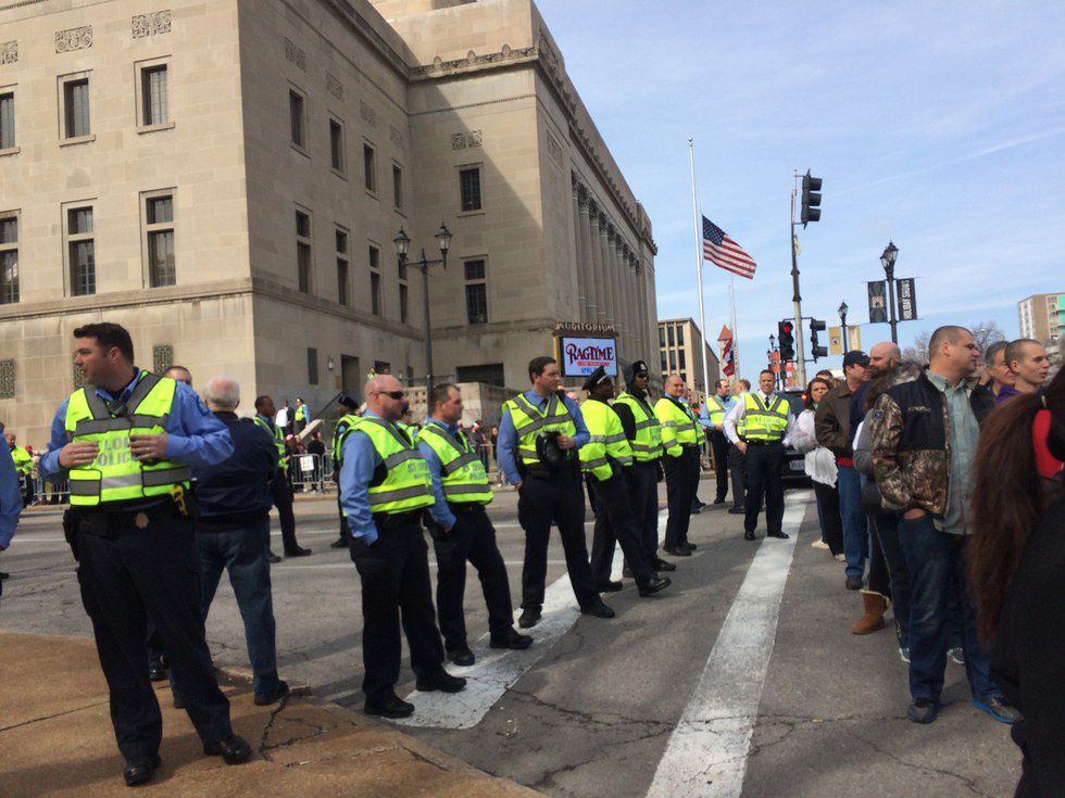 The second aspect of this rally that concerned me was the very obvious police presence there. This rally took place before a man tried to storm the stage toward Trump and before the riots broke out in Chicago, and yet there were lines of police surrounding the event venue (pictured below). Why? Because it seems the police had the same thought I stated above, the Trump campaign seems to bring the madness out of people, whether they are for him or against him. And, as it seems, they weren’t just there for precautionary measures, supporters and protesters clashed throughout the morning and put the police to work.