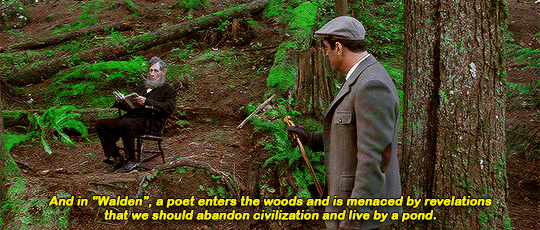 13. "And in 'Walden', a poet enters the woods and is menaced by revelations that we should abandon civilization and live by a pond."![]()