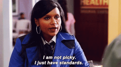 You stop talking to someone because they are too short, they walk in a way that you don't like or the two of you strongly disagree about pizza toppings. Any little thing is a dealbreaker and no one can live up to your impossible standards.