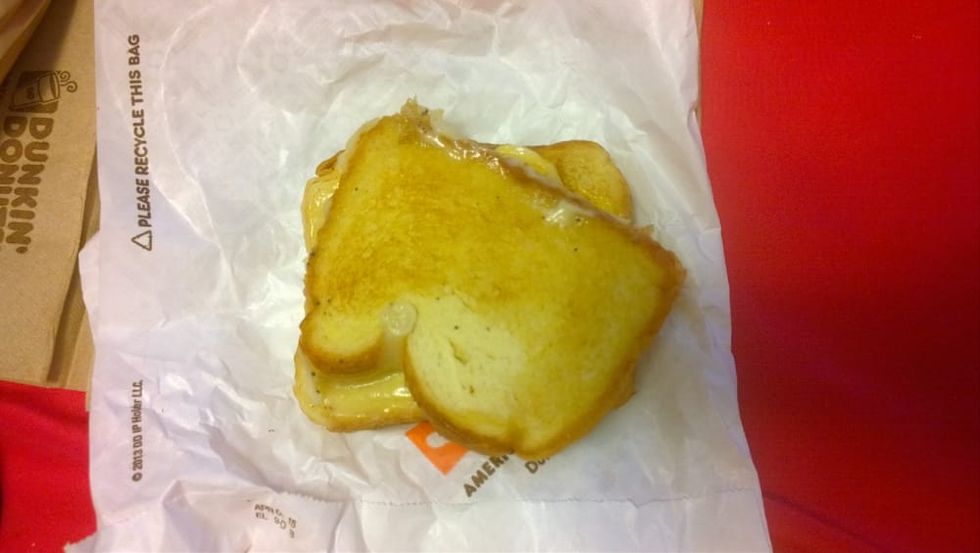 Probably the biggest con of all from this chain is how sloppy the food can be sometimes. I know there aren't many workers behind the counter, but a messy bagel with cream cheese oozing out the sides, or an egg sandwich with the egg barely on the english muffin is not very pleasant. Also, once a certain number of bagels, muffins, or doughnuts out, they're gone; there's no way you'll get your favorite. Something in Dunkin's food and drinks also make me feel bloated most of the time, but I still consume it all anyways.