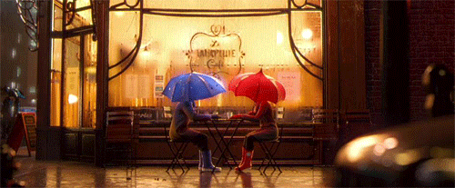 There's nothing better than umbrellas and their owners falling in love in front of a French cafe literally named Le Parapluie Cafe (The Umbrella Cafe).