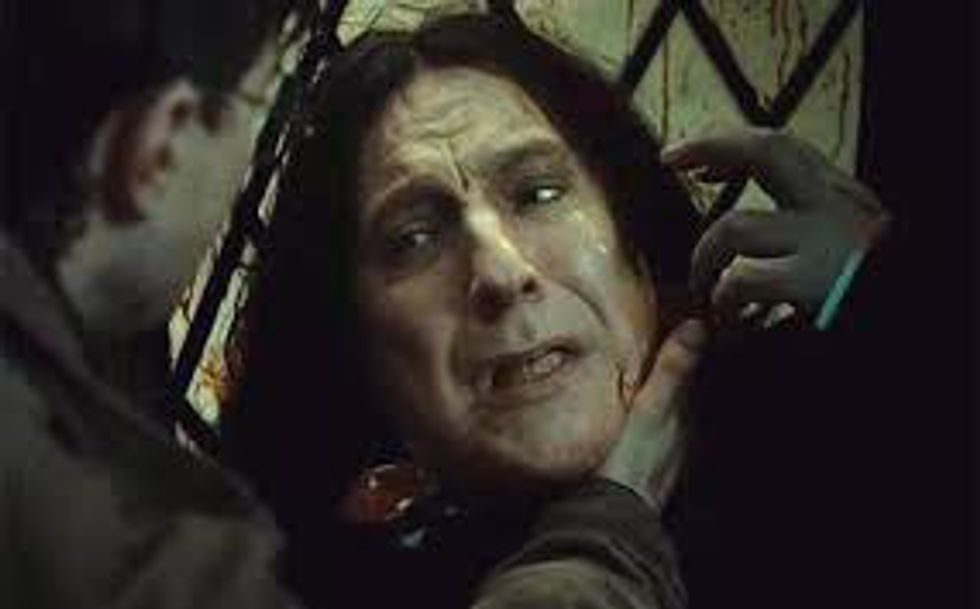 But, just like everyone else, Snape had to get over it. Except he never did. He just kept his distance, closed himself off, and became emotionally isolated, hostile, and aggressive. He decided to become a bad guy. One of the worst guys, actually. Not the best way to deal with a broken heart, sure. But I try to give Sev the benefit of the doubt.