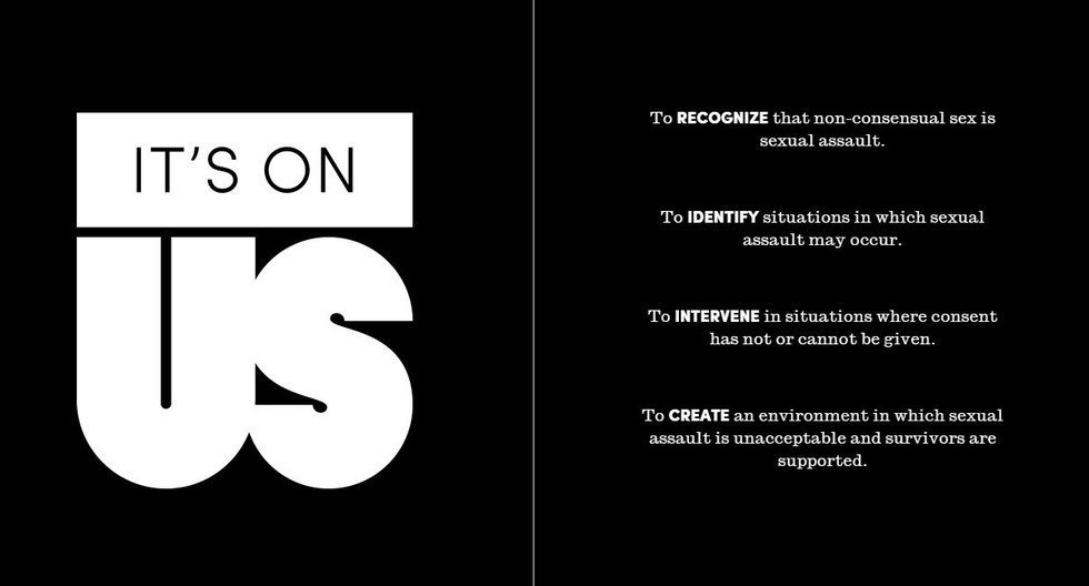Last week, the nation took part in "It's On Us National Week of Action," a White House-led campaign. It's On Us, launched in September and aims to inform the public, especially men, about the real facts of sexual violence in college and all the ways we can help prevent it. The idea is that the more people are informed, the more "it's on us," to prevent a potentially sexually violent situation from occurring.