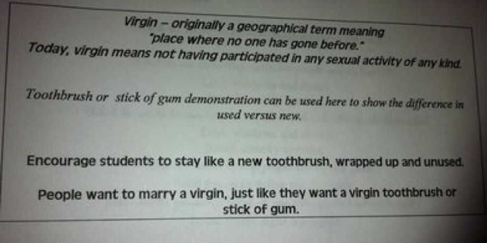 Texan schools have adopted an “abstinence only” policy with its sex education, and legally Texan sex education is only required to talk about HIV and AIDS. Which means you get programs like this: