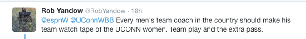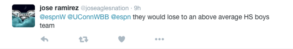 Would the UCONN Women lose to an above average high school boys team? No. They probably would not. To suggest they would diminishes the individual talents of these young women, the work they put into success on a national scale. My personal favorite is when men bring up the stereotype of sexuality in sports for female athletes. Either they are lesbian and should not be playing with straight female athletes, or they are transgender so it makes their accomplishments both less than, but also you degrade their value as a human.