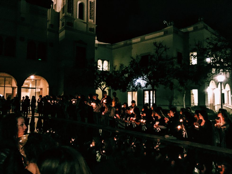 As a part of SAAW (Sexual Assault Awareness Week), students and others on campus were invited to participate in an event called “Take Back the Night.” During this event, we marched around campus and ultimately ended the night at the IPJ for a candlelit vigil for survivors of sexual assault. At the vigil, two students opened up about their personal experiences as being victims of sexual assault at USD. This service was moving and eye-opening, as men and women from all over campus willingly came together to talk about an issue that is so prevalent on college campuses around the world. I promise that you know at least one person who has been sexually assaulted, you have seen them walking on our campus, you have seen them in the SLP, or they are in your class. You just may not know explicitly who they are.