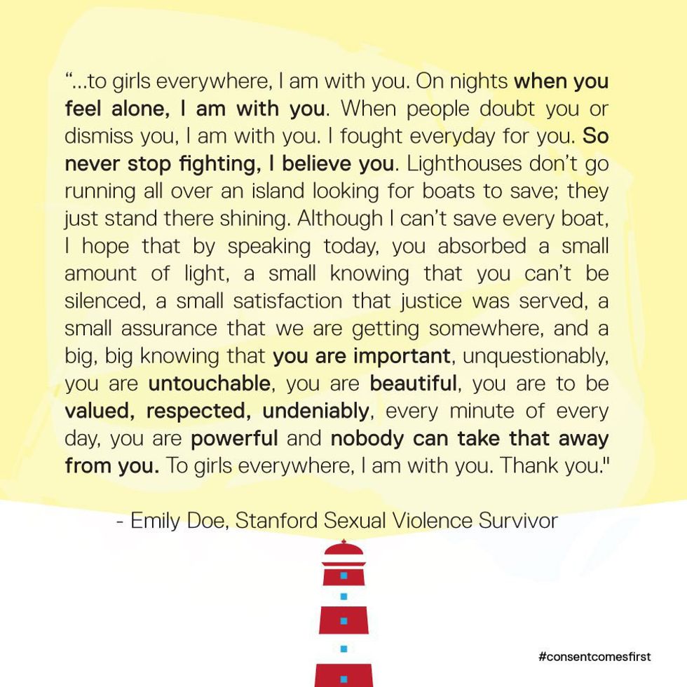 If anyone would dare to say that Emily Doe brought this on herself because she got intoxicated at a party and shouldn't be surprised, I'd challenge you to read her letter without cringing, getting sick to your stomach or tearing up. I watched a video of sexual assault and rape victims reading segments of her letter and started to cry.