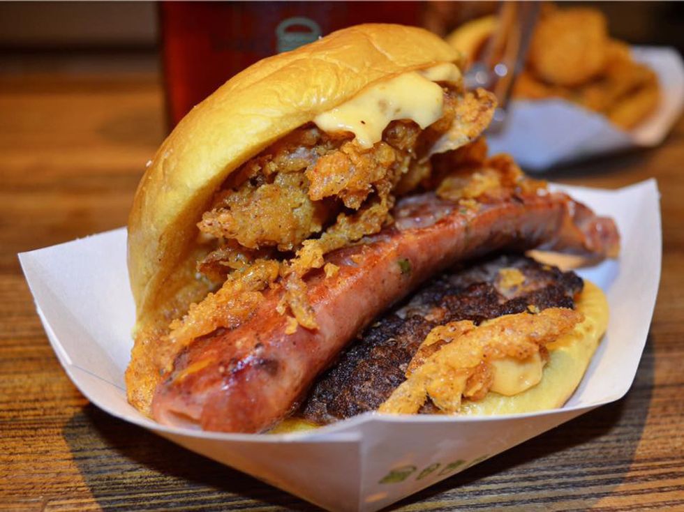 Think burger meets sausage, better yet...burger meets bratwurst, that's what you're getting yourself into when you order the Brat burger. For those who have yet to be introduced to the mouthwatering goodness, a bratwurst is a German sausage generally made from veal, pork, or beef. Shake Shack mastered this dish by bringing together a hamburger topped with a flat-top griddled Usinger’s cheddar-stuffed bratwurst, crispy ShackMeister Ale-marinated shallots and ShackSauce.