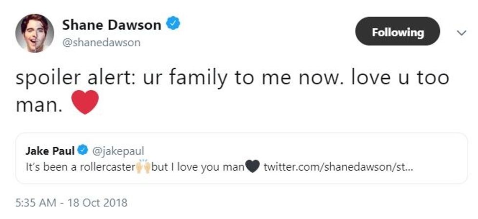 They filmed this series last month, and since then, the two young men have expressed their love to one another with Shane saying he thinks of Jake as family: