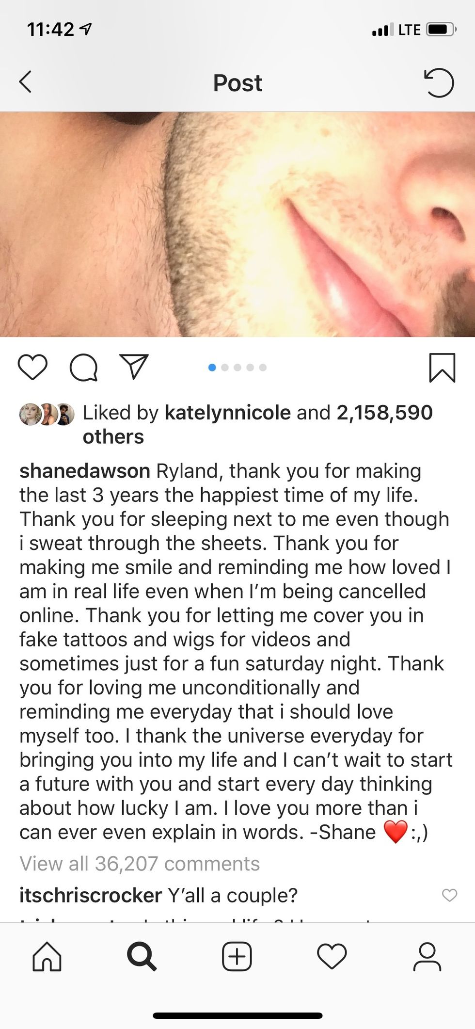 Shane Dawson has grown as a person in four years time. He met the love of his life, starting learning how to love himself and his job even more than before. He started to make content to inspire and show new themes of real life instead of make-believe. Another bright spot is that we got to see more of his real life through Ryland's eyes as well. We learned about the real Shane and not only about the character we saw on his channel or in any HBO series that spawned "Not Cool." His engagement to Ryland should be no surprise to anyone. If you watch either of their channels you would have known it was coming sooner rather than later as they have been together for three years, bought their dream home together, and have been talking about children and spending their lives together. So to those trolls, naysayers, pessimistic people that are likely to continue trying to cancel him, it is true love get over it you lonely single pringle and for a moment from your hunched over position behind the keyboard think before you type. The amount of unoriginal tweets I've seen is rather uninspiring try something else, it is not working. We are in the year of the pig everyone. Sip Sip. Enjoy the tea sisters.