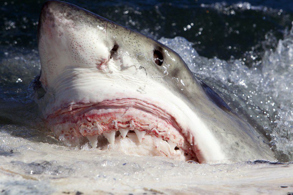 Found in almost any body of water with access to an ocean (including rivers and freshwater sources), the Bull Shark is extremely deadly. Bull sharks are commonly found on North Carolina beaches and seek out large prey. Bull sharks have a notorious reputation for aggressive behavior.