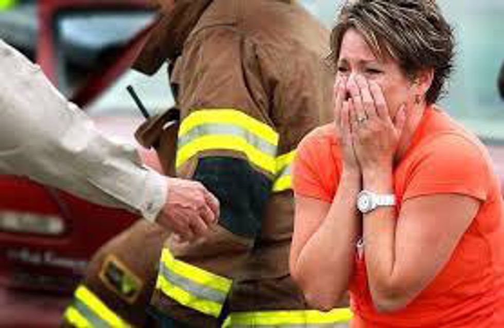 It does not get more real than that. If you look very closely you will see the cars behind them — one is flipped and the other is missing its whole top. The car with the top off is the one that they used The Jaws of Life on.