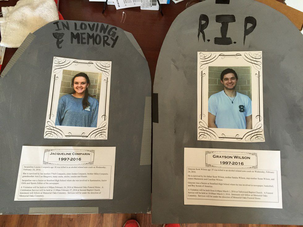 When the student body returns to school the next morning the juniors and seniors have one more assembly. This assembly is supposed to represent the two teens that "died" at the scene. The studnets that were part of the production, stand at the front holding their "headstones" with their coffins and flowers. The parents of the children that "died" in the crash speak. They talk about how it affected their families, how it affected their other children, what they would have been doing if they were not in the crash, and how much they loved their children.