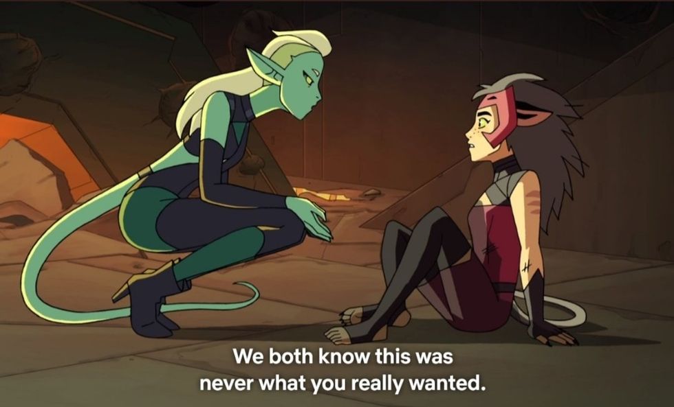 The specific relationship of Adora and Catra—which fans have dubbed 'Catradora'— is important not only because of its dynamic storytelling but also because it is truly a first of its kind to bring queer relationships and existence into the spotlight unlike ever before. Their love is so fundamental to everything in the show that taking it out would be impossible without the story completely falling apart.