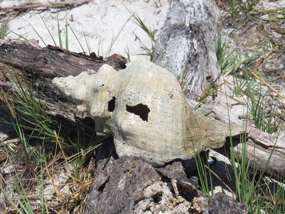 Sanibel Island is connected to a few astonishing different islands. Sanibel connects to Captiva Island by a bridge called Blind Pass, which is a 5 mile stretch of beautiful beaches and multimillion dollar mansions. Above Captiva is another 5 mile stretch of land on North Captiva Island, which is only accessible by boat or private plane. Above North Captiva is a remote island called Cayo Costa, which is an 8 mile long Florida state park only accessible by boat. Cayo Costa has the largest and most beautiful shells I’ve come across yet, and much of the land resembles a jungle leading up to the ocean waters. This is where I found a Triplofusus giganteus, also known as a horse conch, which can be measured as a whopping 11 inch shell filled with barnacles.