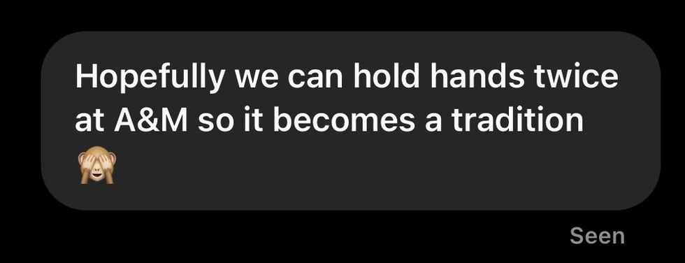 7. Line (For the Aggies): Hopefully we can hold hands twice at A&M so it becomes a tradition.
