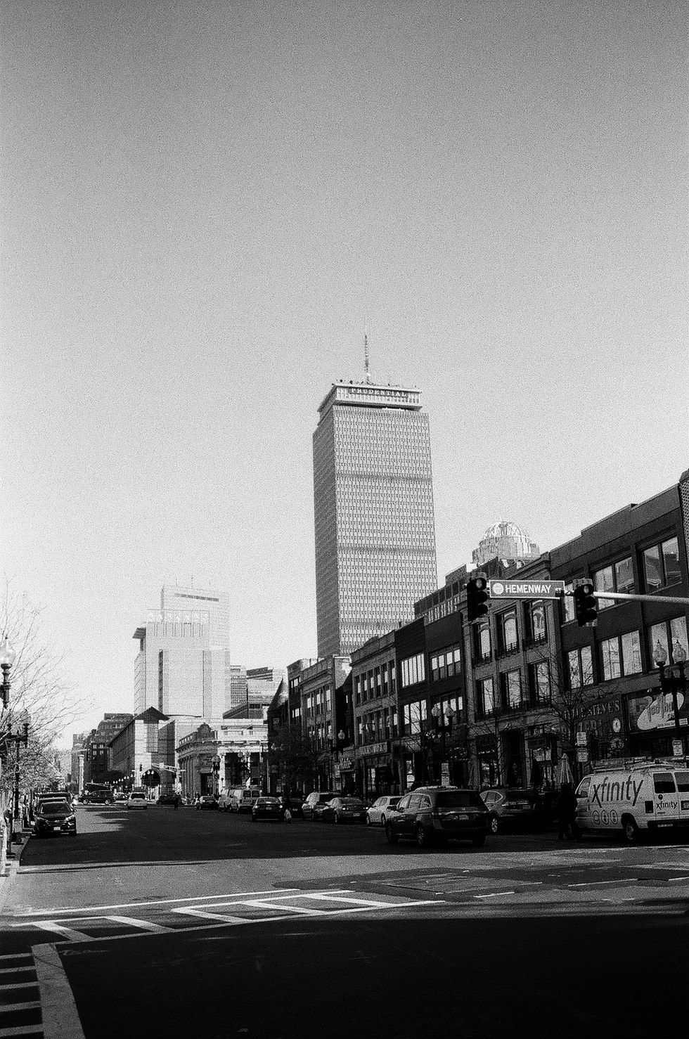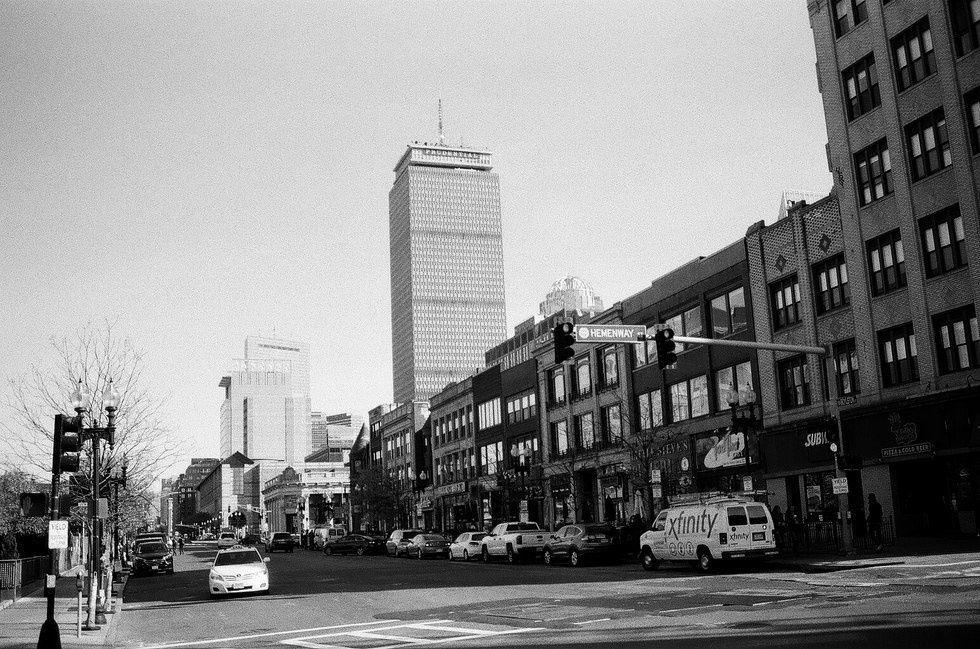 Here we have another instance of how dramatic a difference portrait vs landscape and centering oneself can effect the overall outcome of the photo. In the top photo, we get the sense of the height of the Prudential tower above everything else. The rest of the buildings seem closer and there is a lot of sky available. In the second, we have much more foreground and less wasted space in the sky. Again, both are fine pictures but the second one seems to work better compositionally when looking for balance across the image. There is more light and less muddy shadow as well in the second one. This is due to moving within the shadowed area I took the image in as well as how the camera was oriented. However, one may notice that the 1st image seems straighter and that there is a more notable angle of the shot in the second one. Both of these were taken without a tripod so the uneven sidewalk was not accounted for when I snapped these.