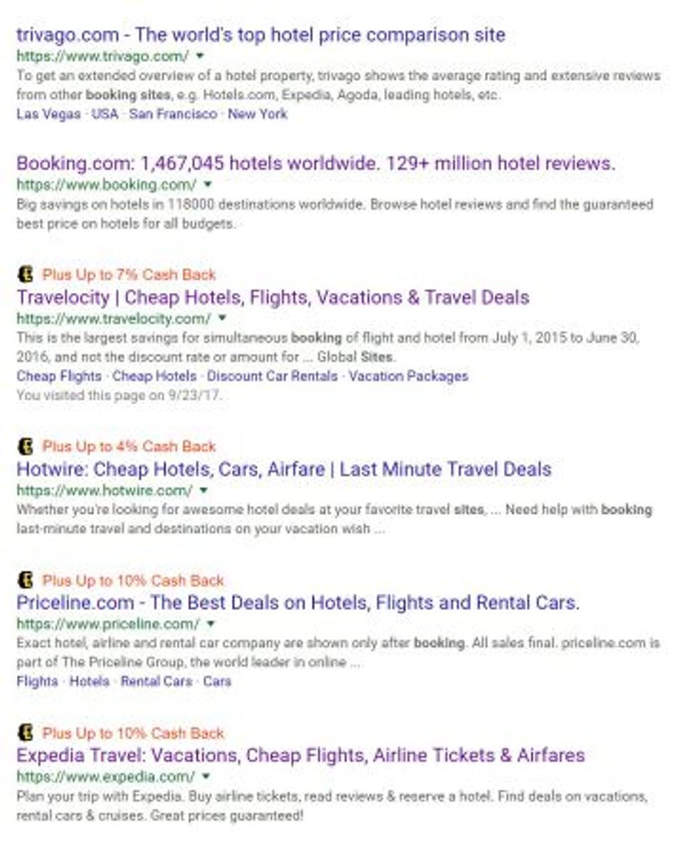 If they do this, they may not choose Expedia right away. Expedia is currently the 3rd paid AD on google which is subject to change of course based on bids from other companies. (As I went back to screenshot this, the Ad for Expedia was already gone). They are also the 6th organic search result when searching for either “flight websites or booking sites”.