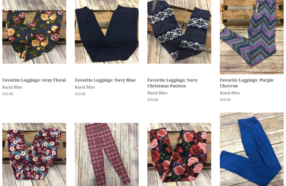 Rural Bliss’s customer service doesn’t just happen when you walk in the door. Cortney purchases each piece of inventory with her customers in mind, and you can tell by what she keeps in stock. Some of her top selling items would be her CC Beanies which only cost $15.00. Then her leggings, oh her leggings, they are to die for! Similar to ones you can find on the market for $25.00, Cortney only charges $10.00 for her leggings. Rural Bliss also takes into consideration that not everyone is a size 0-12, so she carries an abundance of plus size clothing as well.