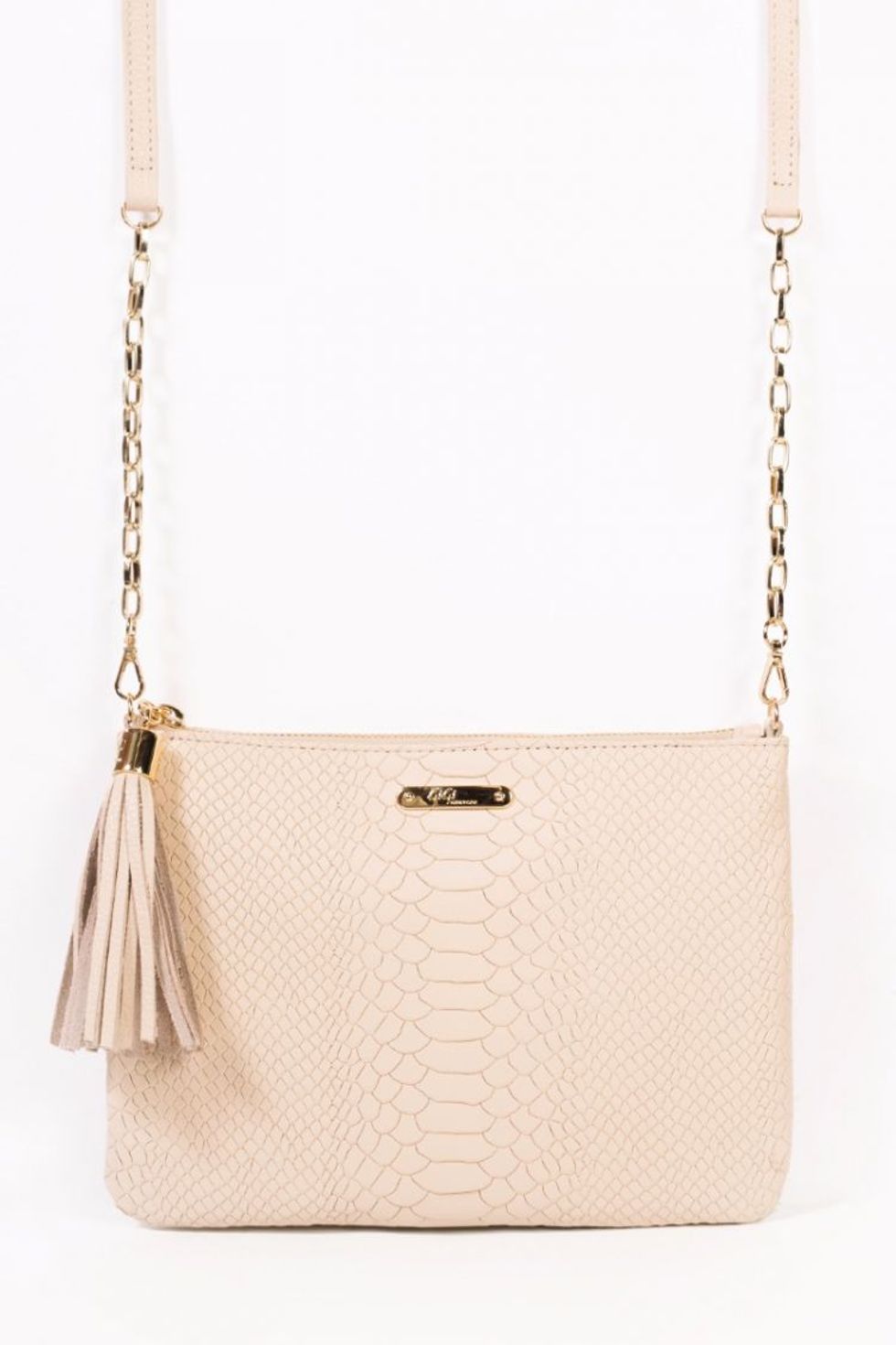 This bag is 9" by 7" and is the perfect size for carrying your wallet, phone, and keys without a bulky frame. The chic and thin design lays nicely against your side as you shop till you drop or run errands while giving you a pop of unique style. A couple weekends back, Bevello had an anniversary sale where the entire store was discounted and I picked out this bag in a deep taupe color (just right to pair with fall outfits) and I could not be happier with the investment. The textured details of this crossbody, paired with the gold accents make it unique and trendy. Check out this bag and matching tote styles in store or online,