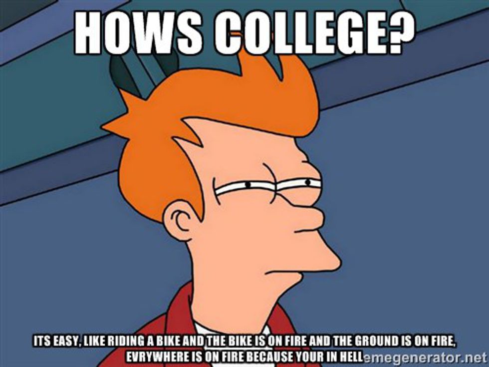 The semester has started and per usual syllabus week commences. This week many people praise because it lets you ease back into the swing of things and you likely won’t be doing much school work. The problem with this is all of the sudden teachers start diving into information and you just weren’t ready for it because you were still on a honeymoon with the syllabus. It sort of reminds you of riding a bike and all of the sudden the bike is on fire and you’re in hell.