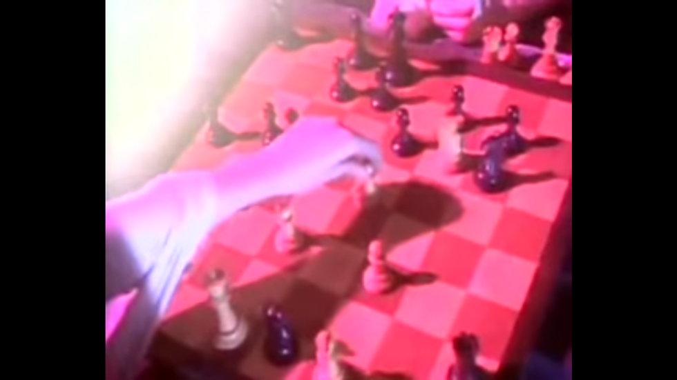 Next, we see what appears to be a chess match between a woman and one of the robed figures from earlier.