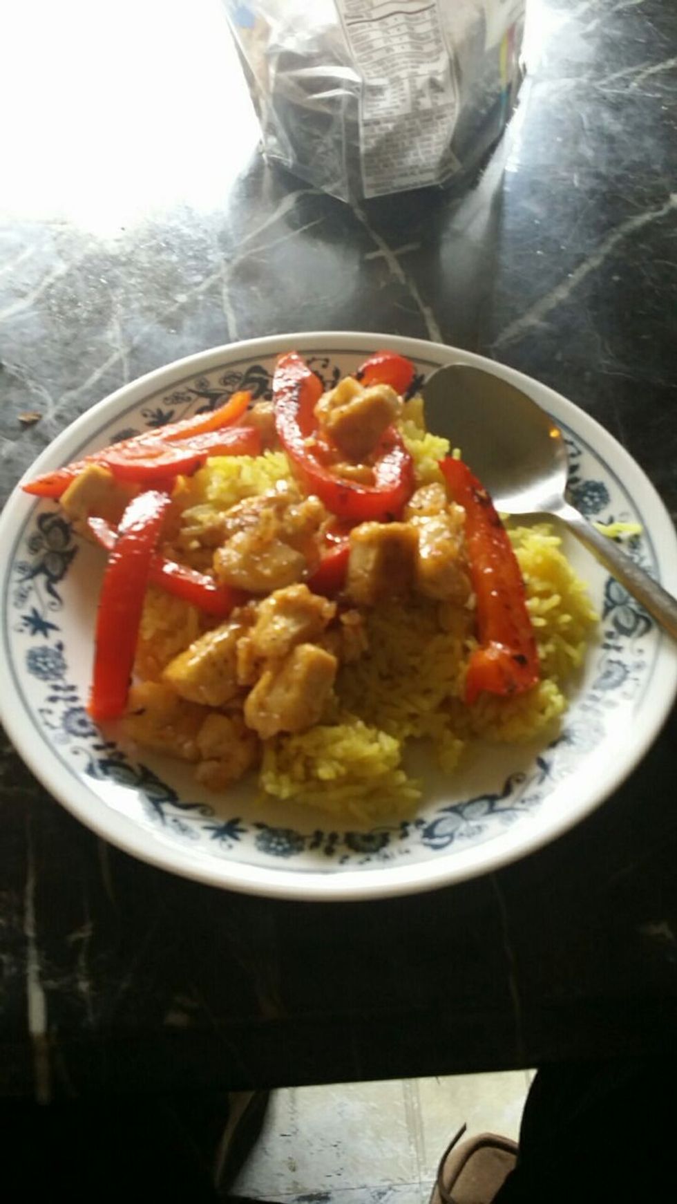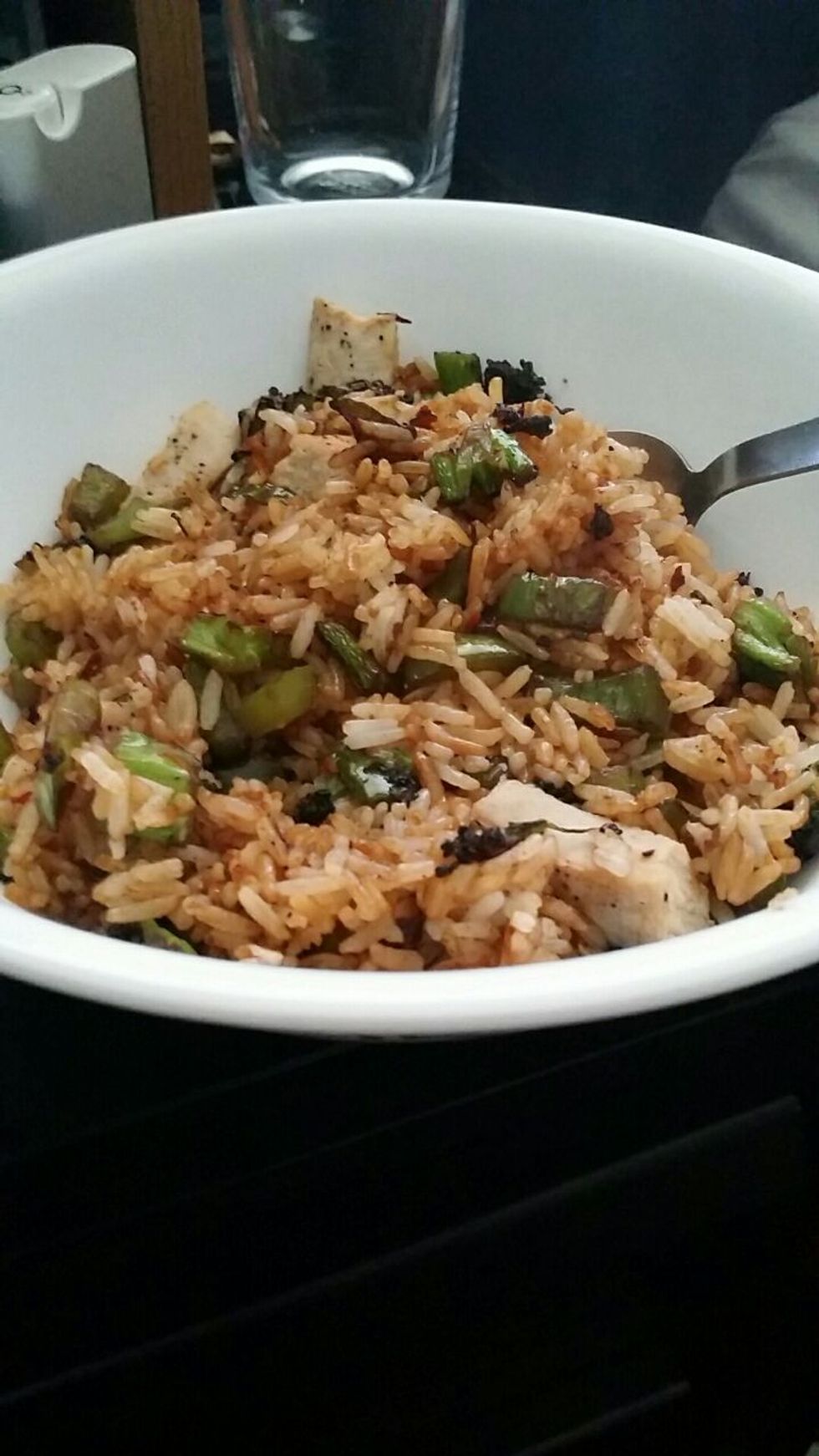 Chicken Fried Rice with Pan Fried Bell Peppers and Brocolli
