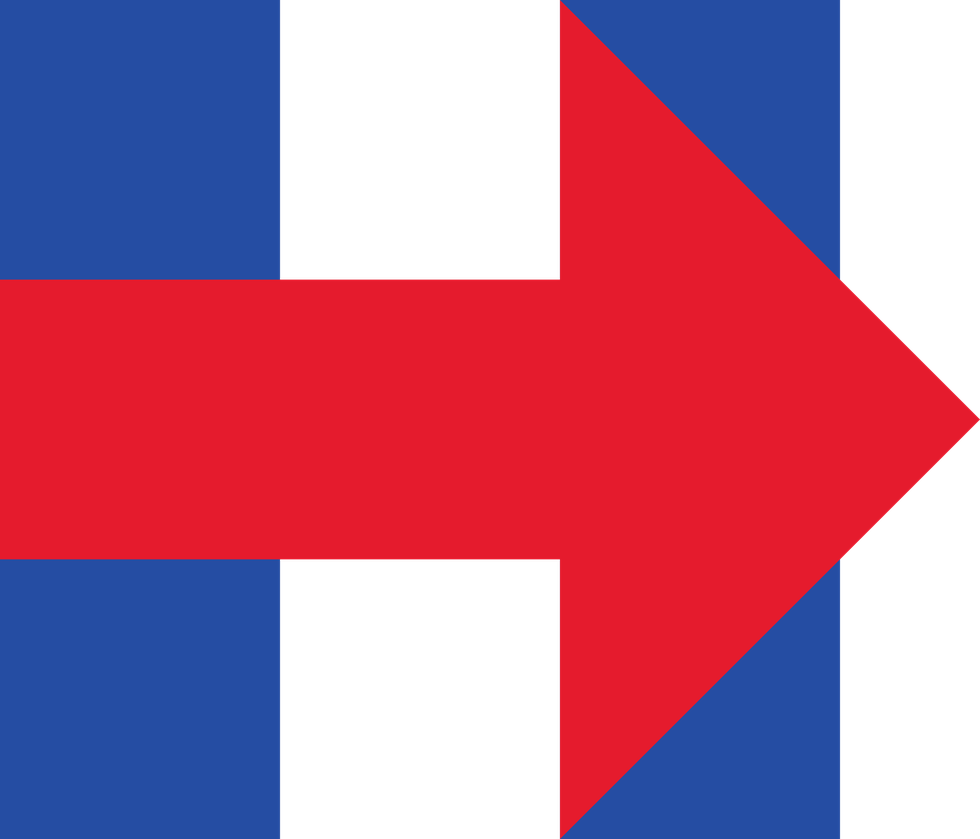 Hillary’s logo is a navy capital letter H with a red arrow in the middle pointing to the right. This is an appropriate signage because it’s completely uncontestable. It’s a letter H. Who doesn’t like the letter H? The arrow pointing forward suggests progress, evokes associations with Fed-Ex, a beloved package delivery company, and adds interest to the design. It’s a satisfying, symmetrical composition that can be adapted in many colors and scaled easily for advertisements, bulletin boards, and digital media.