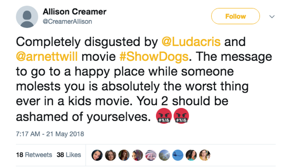 User, Kandace Flanary, asked to "boycott" the movie because of the inappropriate message. Another user, Nuisance Likely says giving someone a "zen place" while being touched against their will is called dissociation. And finally Allison Creamer, calls out the movie's leading actors, Will Arnett and Ludacris saying they should be ashamed of themselves for the message they are sending.