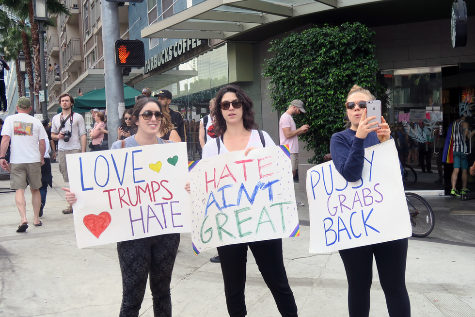 I will respect Trump's position is office, which means I will call him the president. But I refuse to let him take away rights from my brothers and sisters without stepping in. I can respect someone and have a difference of opinion. I can respect someone and protest against a wall that they are trying to build. I can respect someone and realize that love is strong, and everyone should be able to love who they want. I do not hate Donald Trump. I will not hate him, like I feel like he hates a lot of Americans. I hope he does a good job in his presidency, but I will fight for my rights to be an American citizen and to live peacefully and happily.