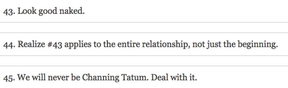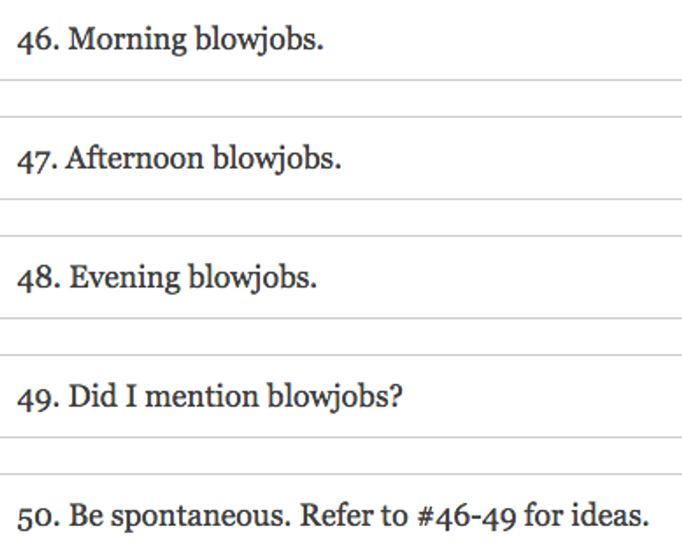 50. Be spontaneous. Surprise us with actually being a decent human being, maybe even a real man.