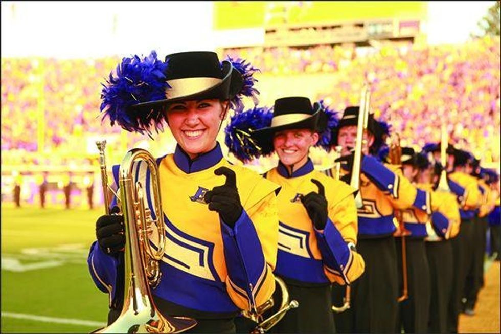 Throughout the game your eye will catch the sequins delicately stitched into the vibrant purple pirate hats atop each band member, as they sway in the dying sunlight to the tunes of ECU fight song.