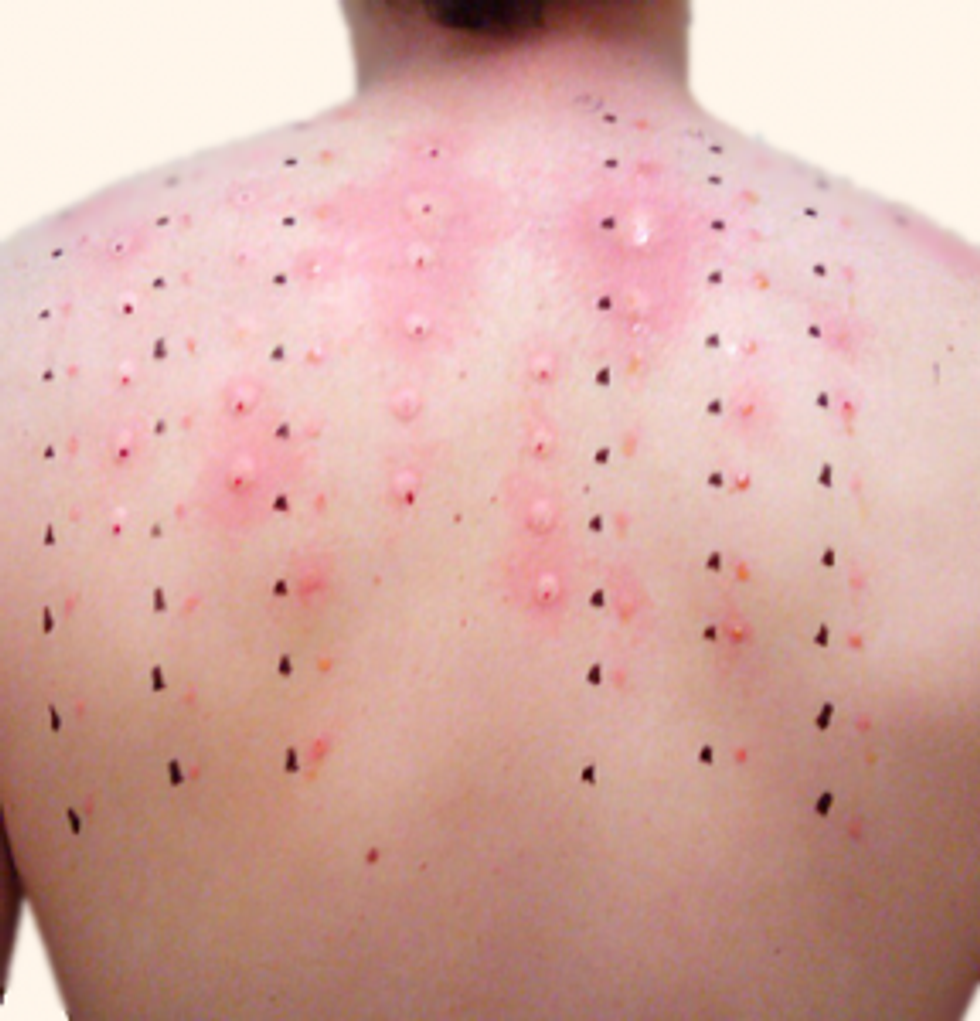 God, my back is getting itchy just thinking about this hell of a procedure. People with severe allergies know what this is a picture of — someone's back after everything you're allergic to is pressed into your back and wiggled around. If you've had this done before, you know you always ask yourself, is this really worth it to be able to breathe?