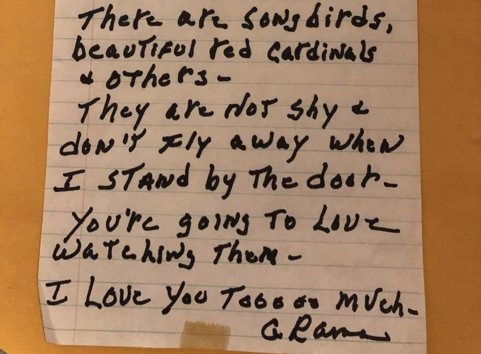 The letter my grandma wrote me as a child, telling me I was going to love watching cardinals.