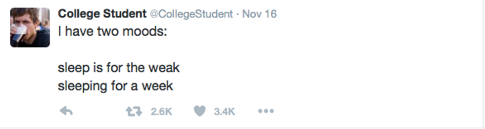 I don’t know about you, but I just can’t seem to ever wake up anymore, all I want to do is sleep. It’s like I’m a bear during the winter, hibernating. Everyone seems to be going into hibernation. Everyone is at the point in the semester where you rather sleep than go to class. We have a week to two weeks left no one cares about class anymore, unless it’s review. If you’re skipping class more than once a week -- it’s time to go home.