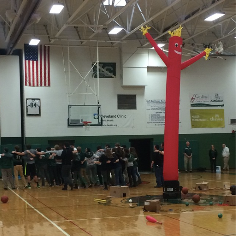 A pumpkin-scarecrow halloween lawn ornament as a mascot, never the less has had a funeral for it. What school has a "think tank" besides LC? We are wonderfully weird in so many ways, and that is what makes us cougars. The ceiling tiles have random works of art on them and there was once random pictures of Steve Irwin put in teacher's mailboxes and decorated the walls. Who else has a pep rally in which the main attraction is an "air dancer" that you see at car dealerships or has a goose that sits right at the same window above main hall and stares at everyone. Lake Catholic has so many weird quirks that seem completely normal to us.