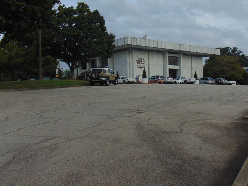 If you do not dread the walk to Jacobs, you do dread the parking lot. It may not look steep in the picture, but it is. And it is a long parking lot. Yes, that is because the Jacobs building used to be a bank, but you do dread the parking lot portion of the walk. The part about the parking lot you love most is that it is the final stretch.