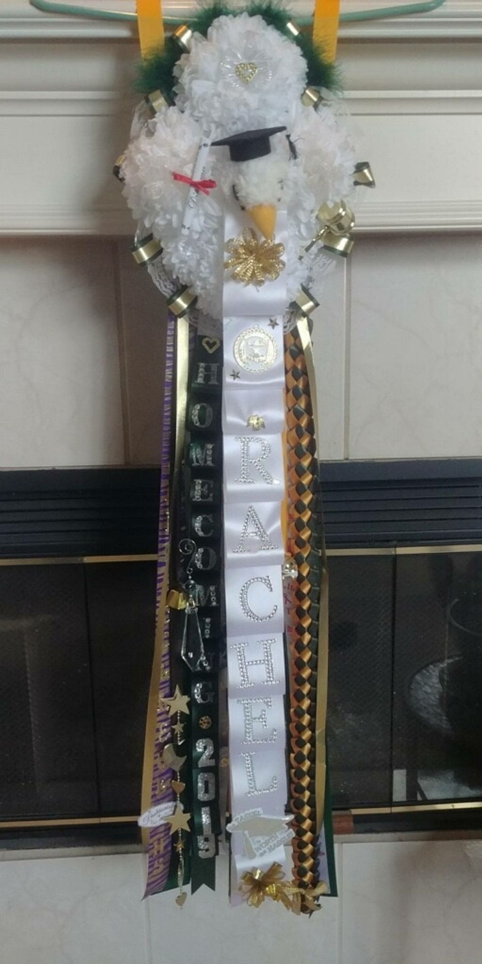 Yes. Mums. Those big flower things decorated with bells and boas people wear around their necks during homecoming season. It's a Texan tradition, though they have started to pop up in different states.