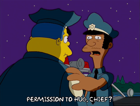 *taps friend on shoulder with index finger, maintaining at least an arm's length of distance* there, there.