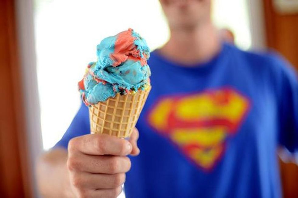 It's the best tasting ice cream, and originated in Michigan. It's traditionally blue, red, and yellow. I have yet to see it offered in New England.