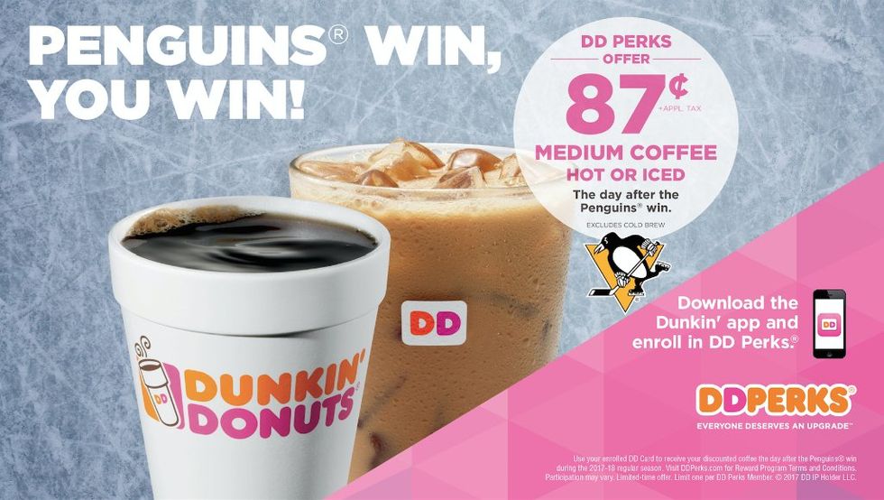 Shout out to the Pittsburgh Penguins because when they win, I win with an 87 cent coffee.