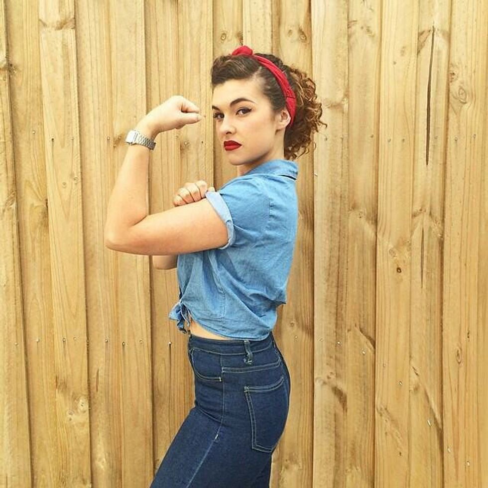 All you’ll need to pull of this girl power costume is a red bandana and jean shirt and pants – plus you’re best “yes we can!” pose! Add a classic hairstyle and some bright red lips and you’ll be looking strong as hell all night.
