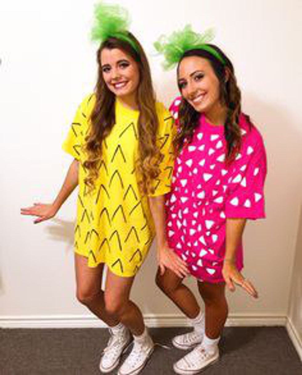 For this super cute (and really popular!) costume, all you’ll need is an oversized t-shirt and a marker. Turn yourself into a pineapple or strawberry for the night. You’ll look super cute and you’ll be comfortable all night, too!